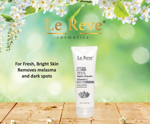 “Le Reve” Facial Whitening Wash is a gentle cleanser that removes dirt & oils while its natural whitening ingredients ( alpha arbutin, vitamin C and diacetyl boldine) rejuvenate, brighten & even the skin's complexion.